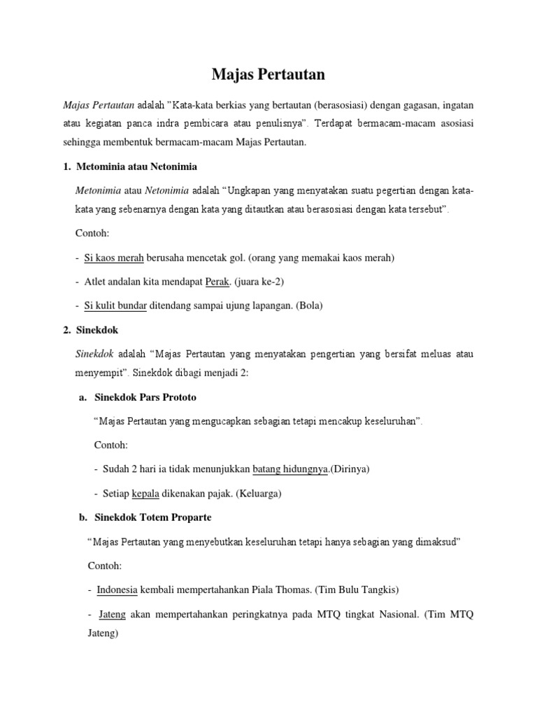 Sejarah Singkat dan Mukjizat Nabi Musa as. Pengertian Jenis dan Contoh Perusahaan Perseorangan. Majas sinekdoke bisa dianggap sebagai majas perbandingan namun cara penyampaiannya membuat majak ini masuk ke majas pertautan.